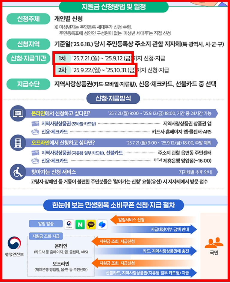 • 1차 신청 및 지급: 2025년 7월 21일 ~ 9월 12일
