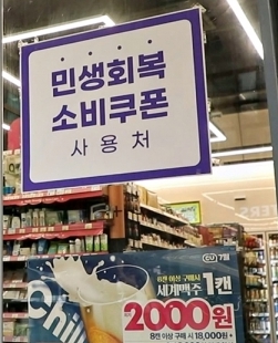 - 매장에 배부된 “민생회복 사용 가능” 스티커를 부착