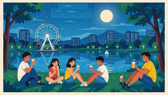 • 일산 호수공원: 킨텍스에서 도보 이동 가능! 넓은 잔디밭과 호수에서 잠시 쉬어가기 좋아요. 밤 야경도 멋져요.